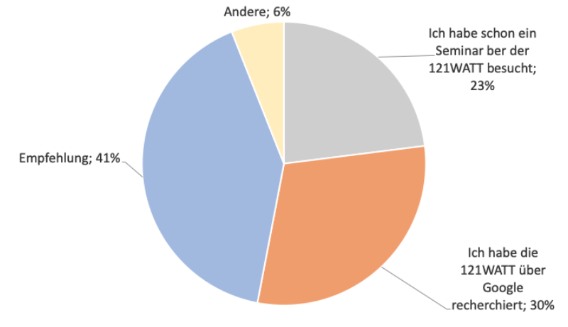 Ihr seht, dass diese Umfrage die echten Treiber unseres Geschäftes offenbart: Bestandskunden und Empfehlung sind ursächlich für fast ⅔ unserer Seminar-Anmeldungen.