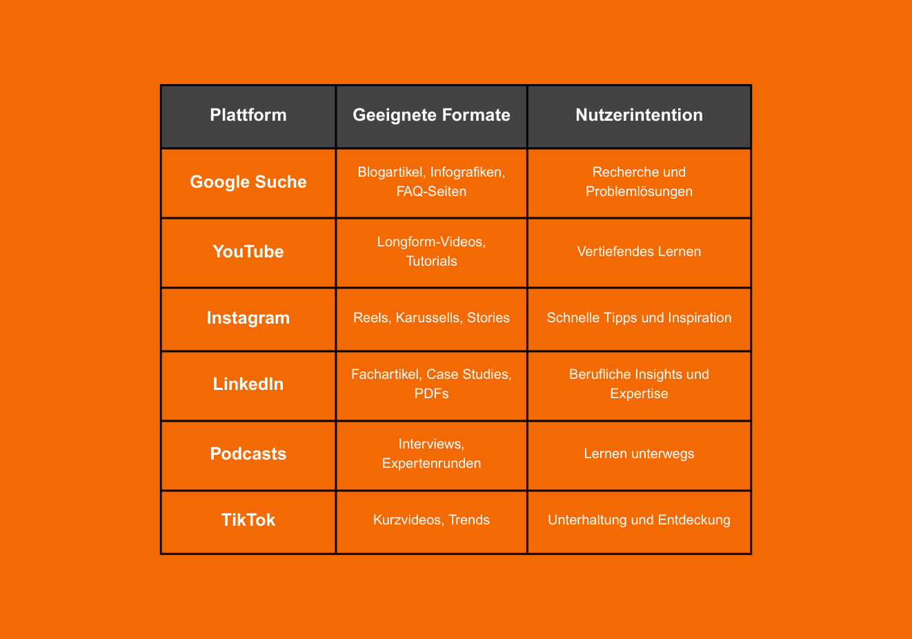 Nicht jeder Inhalt passt in jedes Format. Deshalb solltest du definieren, welche Formate du für welche Inhalte
