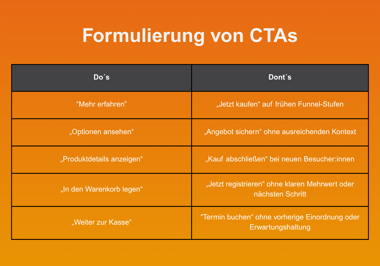 Do & Don’t: So formulierst du CTAs entlang der Funnel-Stufen