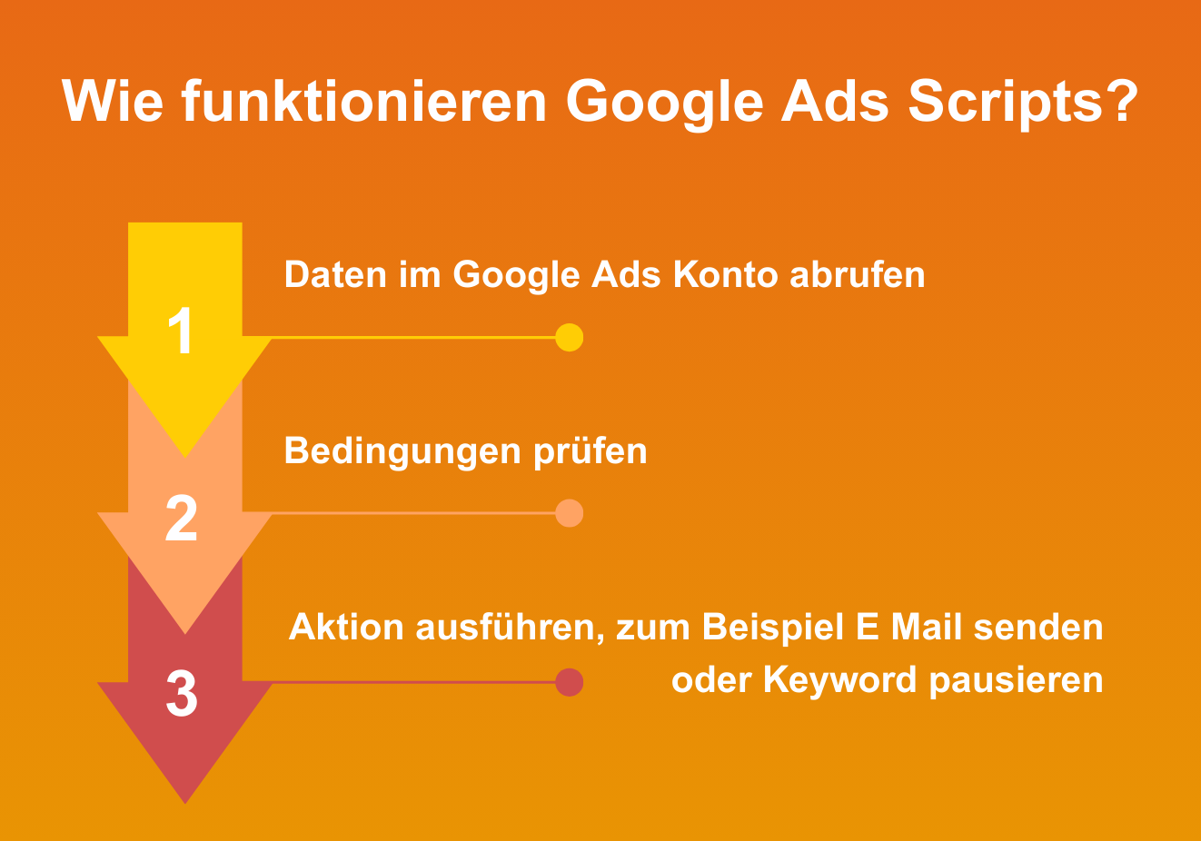 Technisch greifen Scripts dabei auf die Daten und Funktionen von Google Ads zu. Sie lesen Kennzahlen aus, filtern nach bestimmten Bedingungen und stoßen anschließend eine vorher definierte Aktion an. Typisch sind drei Schritte: