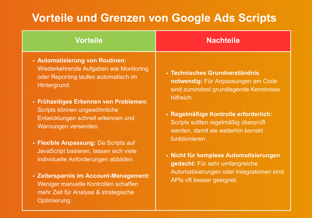 Vorteile und Grenzen von Google Ads Scripts
